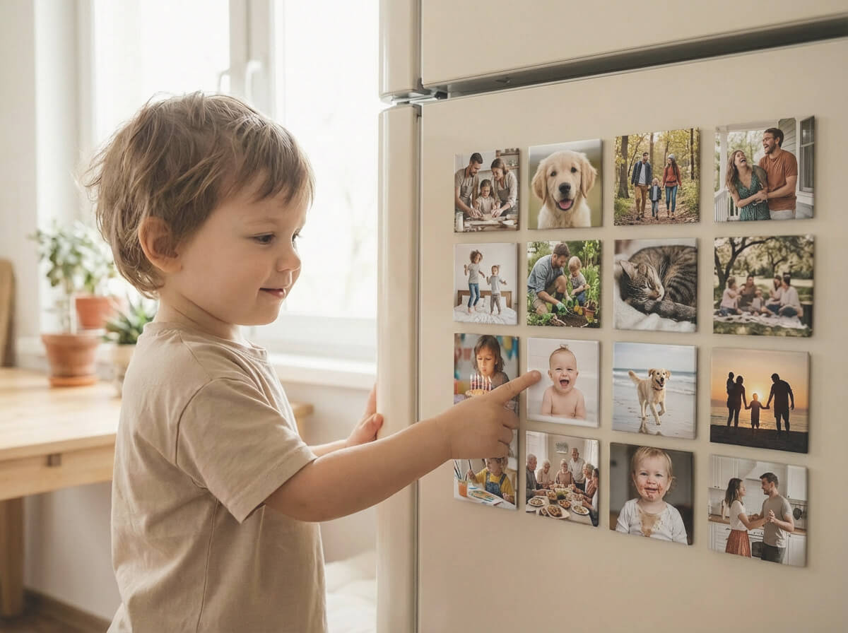 We print each magnet on premium glossy paper that makes colors pop and memories shine. Our extra-strong magnetic backing stays put through busy mornings, sticky fingers, and years of daily joy.